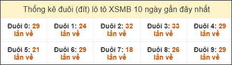 Thống kê tần suất đuôi lô tô Miền Bắc đến ngày 21/09/2025