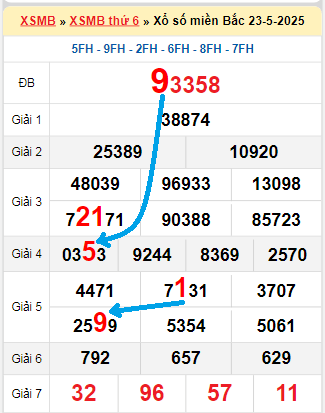 Kết quả xổ số miền Bắc ngày 23/5/2025