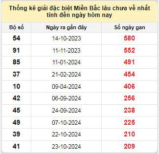 ⇒ Click xem tổng hợp thống kê các cặp số lâu về nhất miền Bắc hôm nay tại: