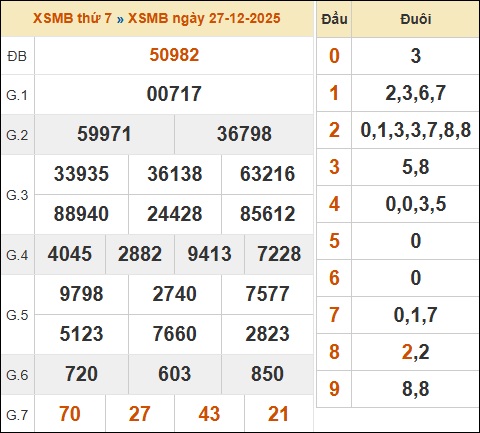 1. ✔️ Xem lại KQXSMB ngày 27/12/2025 hôm qua