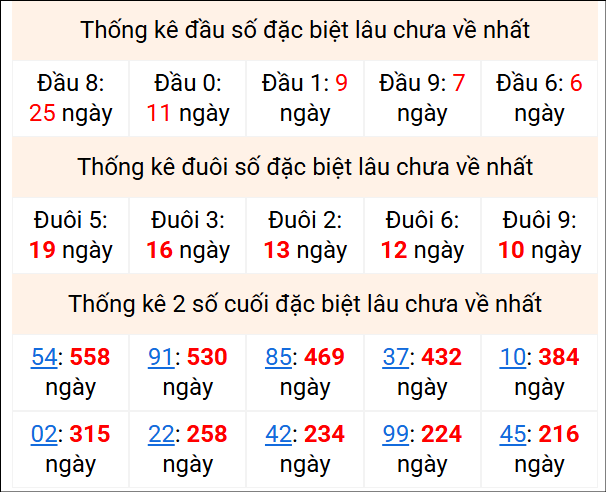 ⚡ Thống kê giải đặc biệt lâu chưa về: 54 - 91 - 85 - 37 - 10