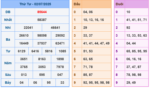 - Dựa Trên kết quả XSMB ngày: 02/07/2025
