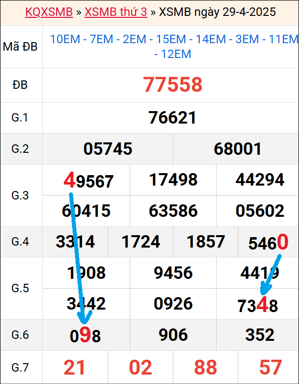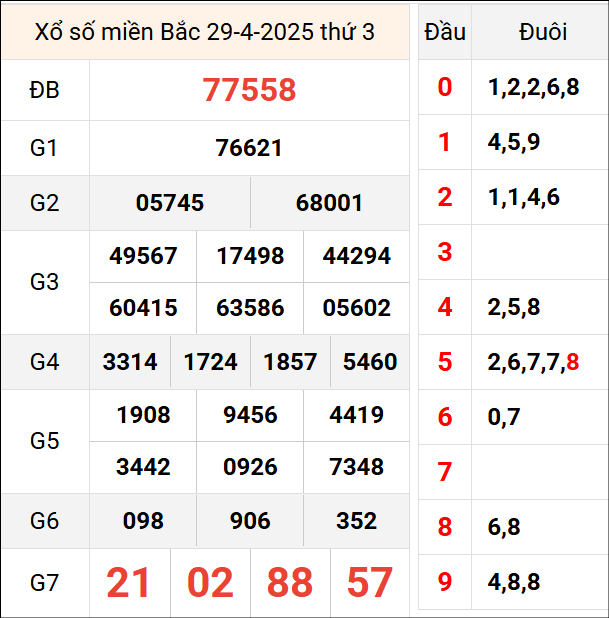 Bảng thống kê 2 số cuối đặc biệt gan ngày 30/4