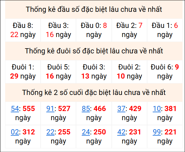 ⚡ Thống kê giải đặc biệt lâu chưa về: 54 - 91 - 85 - 37 - 10
