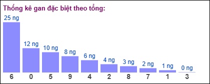 ⇒ Từ bảng thống kê trên, ta thấy tổng đặc biệt lâu chưa xuất hiện nhất là tổng 6 (bao gồm những cặp số: 06, 15, 24, 33, 42, 51, 60, 79, 88, 97), và đã 25 ngày chưa xuất hiện.