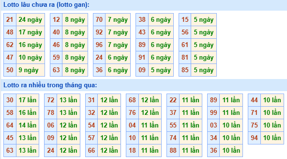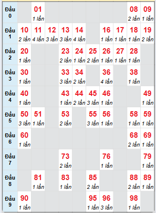 ⇒ Xem bảng tần suất lô tô các cặp số từ 00 đến 99 của đài miền Bắc trong tháng tại: