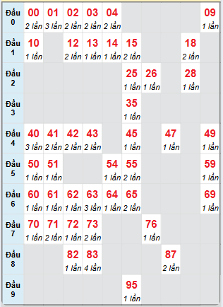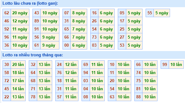 ⇒ Xem bảng tần suất lô tô miền Bắc các cặp số từ 00 đến 99 trong tháng chi tiết nhất tại: