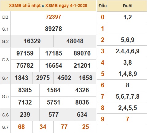 Theo dõi lại kết quả XSMB 04/01/2026 hôm qua