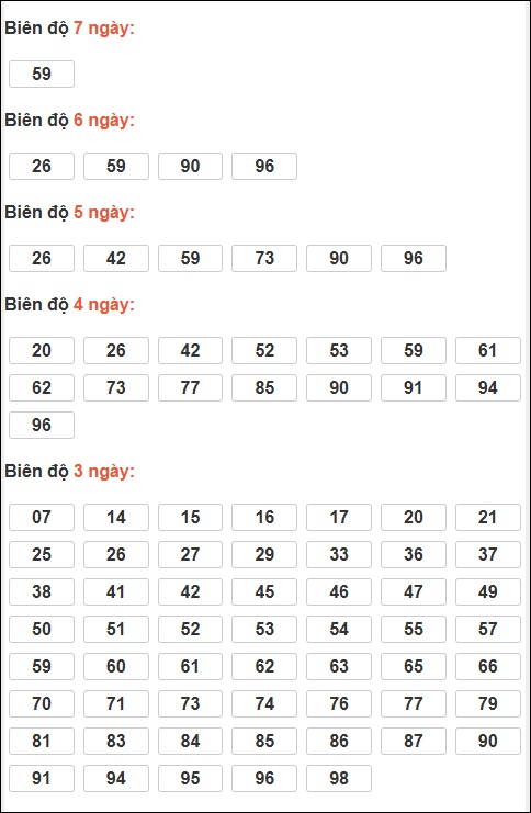 - Kỳ trước có loto 59 ⇒ Thống kê loto hay về: 41