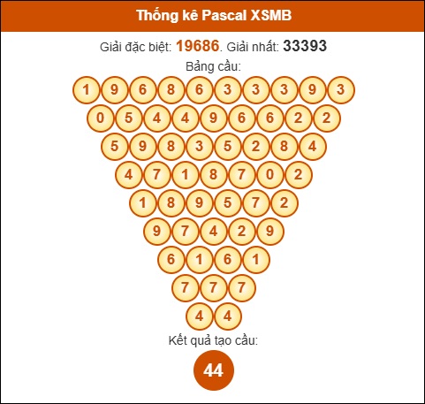 Phân tích kết quả xổ số Miền Bắc 5/11 dựa vào tam giác Pascale (được tính theo kết quả: giải Đặc Biệt và giải Nhất):