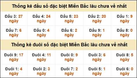 Thống kê đầu đuôi giải đặc biệt XSMB lâu về nhất