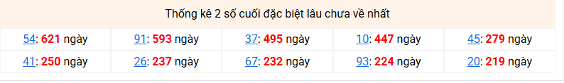 ⚡ Thống kê giải đặc biệt lâu chưa về: 54 - 91 - 37 - 10 - 45