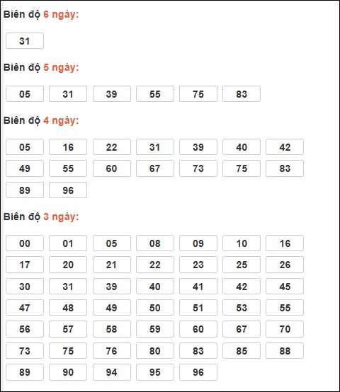 - KQXS có 31 ⇒ Thống kê loto về nhiều: 96