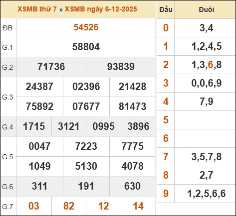 Xem lại kết quả xổ số miền Bắc ngày 06/12/2025 hôm qua
