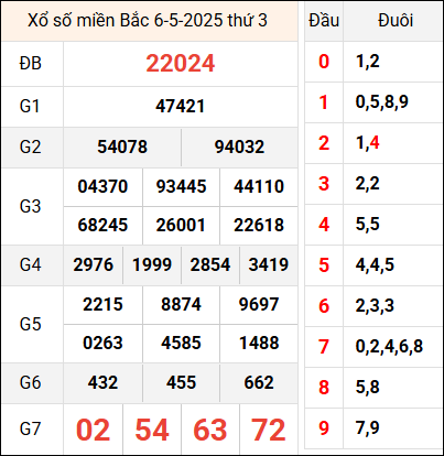 Dự đoán xổ số miền Bắc 7/5/2025 ❤️ Dự đoán xổ số miền Bắc ngày 7 tháng 5 năm 2025 thứ 4 hôm nay chi tiết nhất. Cùng theo dõi thống kê kết quả hôm qua để đưa ra những dự đoán chính xác trong ngày.