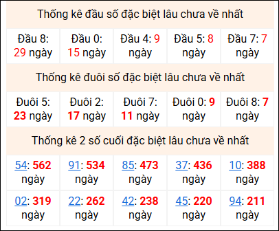 ⚡ Thống kê giải đặc biệt lâu chưa về: 54 - 91 - 85 - 37 - 10