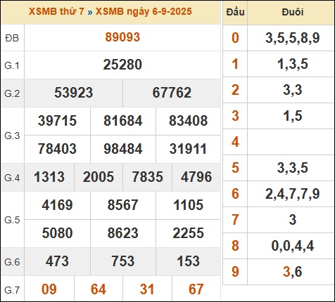 Xem lại kết quả xổ số miền Bắc ngày 06/09/2025 hôm qua