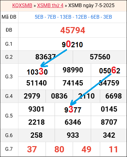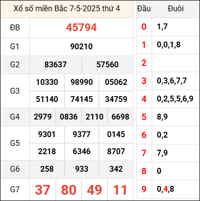 Bảng kết quả hôm qua ngày 7/5/2025
