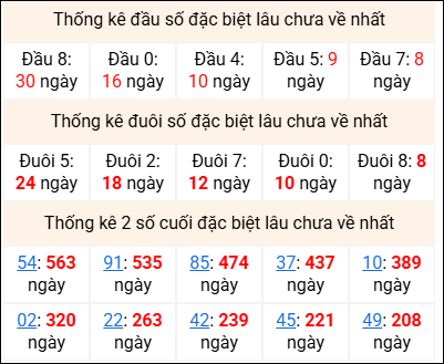 ⚡ Thống kê giải đặc biệt lâu chưa về: 54 - 91 - 85 - 37 - 10