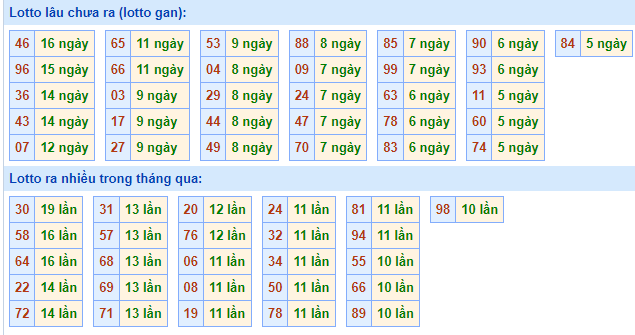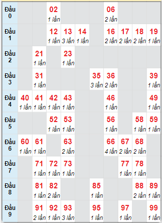 ⇒ Xem bảng tần suất lô tô miền Bắc từ 00 đến 99 trong tháng chi tiết nhất tại: