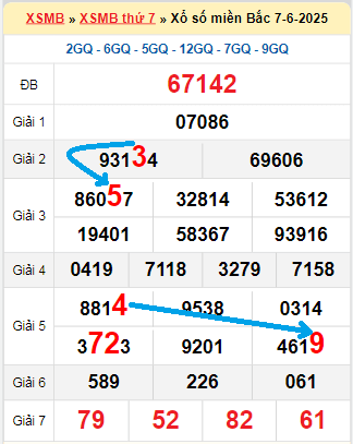 Kết quả xổ số miền Bắc ngày 7/6/2025