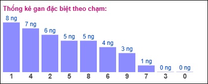 ⇒ Dựa vào bảng thống kê gan ĐB theo chạm đề, ta thấy chạm 1 (bao gồm 19 cặp số có chứa số 1), và 8 ngày chưa xuất hiện.