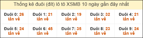 Thống kê tần suất đuôi lô tô Miền Bắc đến ngày 08/08/2025