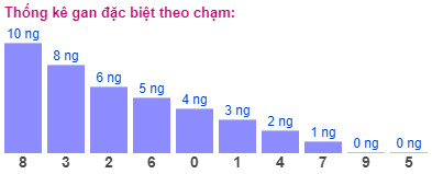 Thống kê cho thấy chạm đề lâu chưa xuất hiện nhất là chạm 8 (bao gồm 19 cặp số có chứa số 8), đã 9 ngày chưa ra.