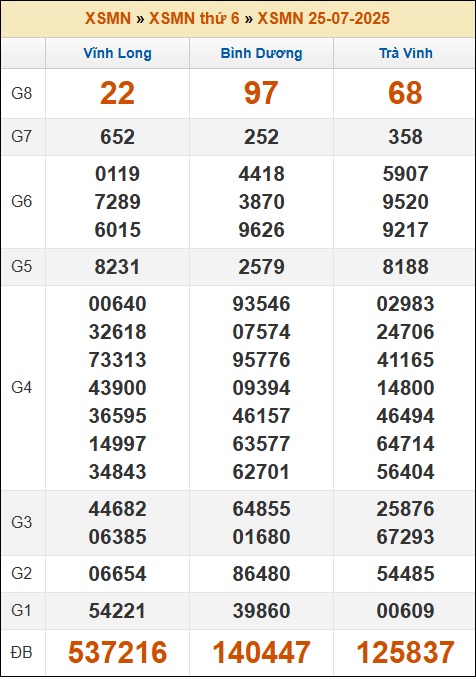 Kết quả xổ số Miền Nam ngày 25/7/2025 thứ 6 tuần trước