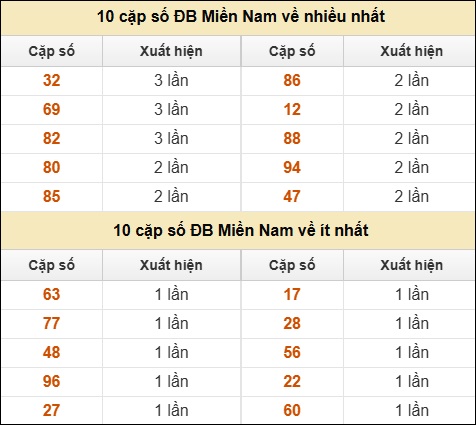 ⚡ 10 cặp số ĐB Miền Nam về nhiều nhất/ ít nhất tính đến ngày 01/08/2025:
