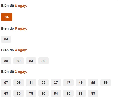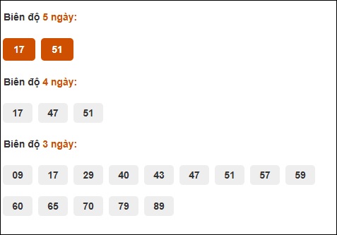 Đuôi 4: 6 ngày, Đuôi 1: 4 ngày, Đuôi 5: 3 ngày, Đuôi 0: 2 ngày, Đuôi 3: 2 ngày