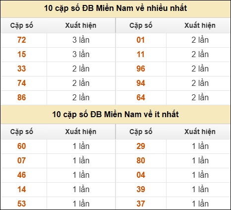 ⚡ 10 cặp số ĐB Miền Nam về nhiều nhất/ ít nhất tính đến ngày 01/09/2025: