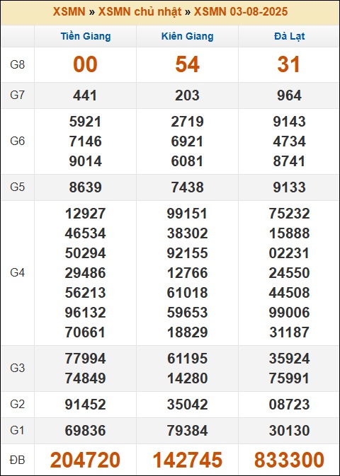 Kết quả xổ số Miền Nam 3/8/2025 chủ nhật tuần trước