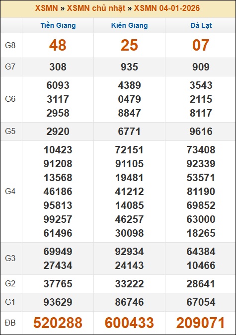 1. ✔️ Xem lại KQXSMN chủ nhật tuần trước 04/01/2026