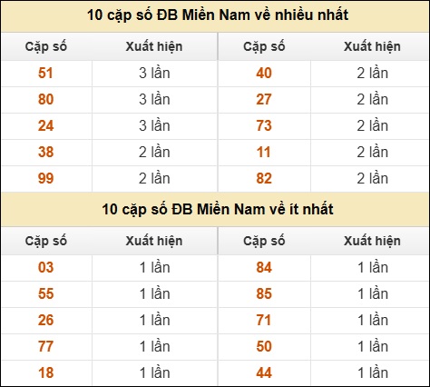 ⚡ 10 cặp số ĐB Miền Nam về nhiều nhất/ ít nhất tính đến ngày 11/01/2026: