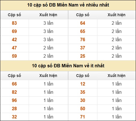 ⚡ 10 cặp số ĐB Miền Nam về nhiều nhất/ ít nhất tính đến ngày 12/12/2025: