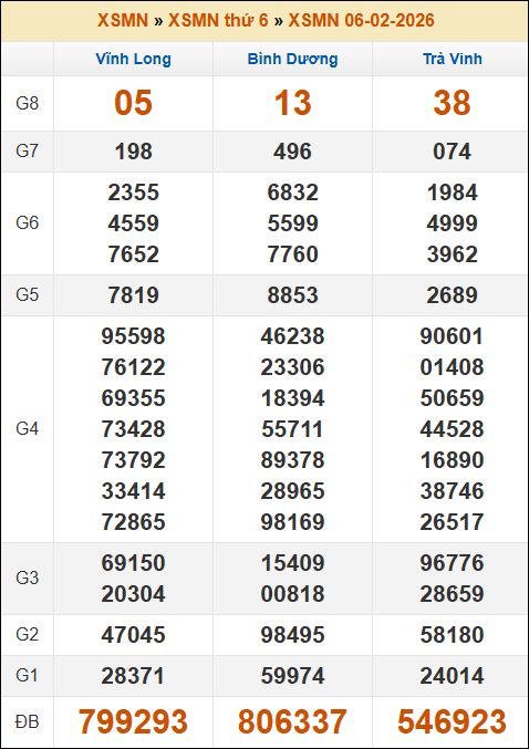 Kết quả xổ số Miền Nam ngày 06/02/2026 thứ 6 tuần trước