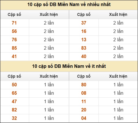 ⚡ 10 cặp số ĐB Miền Nam về nhiều nhất/ ít nhất tính đến ngày 13/03/2026: