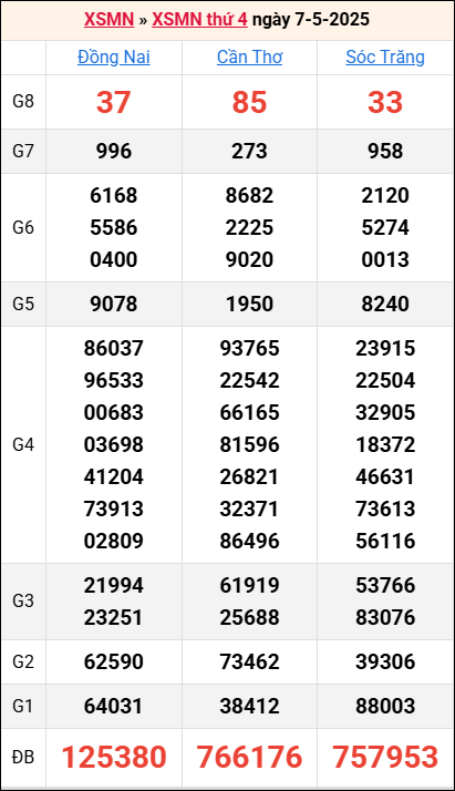 Bảng kết quả kỳ trước 7/5/2025