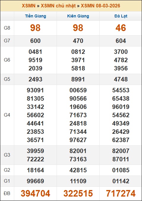 1. ✔️ Xem lại KQXSMN chủ nhật tuần trước 08/03/2026