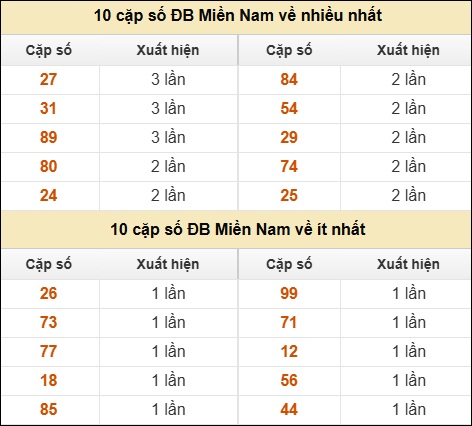 ⚡ 10 cặp số ĐB Miền Nam về nhiều nhất/ ít nhất tính đến ngày 15/03/2026: