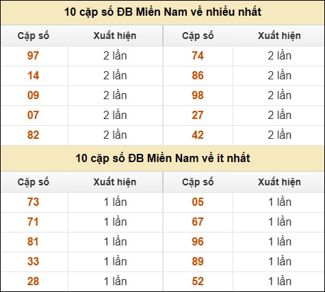 ⚡ 10 cặp số ĐB Miền Nam về nhiều nhất/ ít nhất tính đến ngày 16/10/2025: