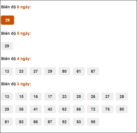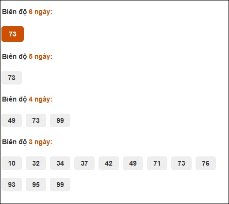 Đuôi 1: 8 ngày, Đuôi 2: 3 ngày, Đuôi 3: 2 ngày, Đuôi 5: 2 ngày, Đuôi 0: 1 ngày
