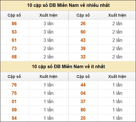 ⚡ 10 cặp số ĐB Miền Nam về nhiều nhất/ ít nhất tính đến ngày 17/9/2025: