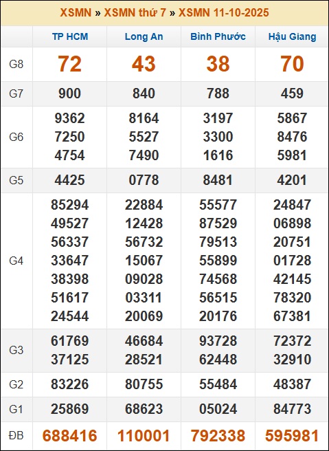Kết quả xổ số Miền Nam 11/10/2025 thứ 7 tuần trước