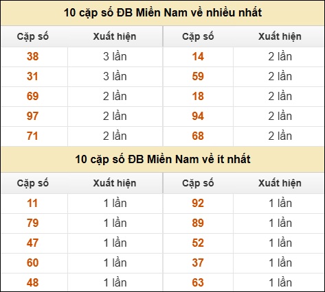 ⚡ 10 cặp số ĐB Miền Nam về nhiều nhất/ ít nhất tính đến ngày 18/03/2026: