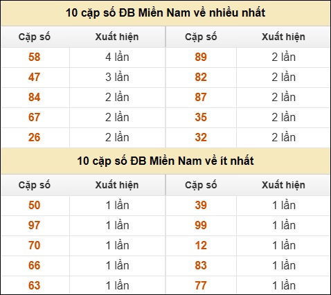 ⚡ 10 cặp số ĐB Miền Nam về nhiều nhất/ ít nhất tính đến ngày 18/04/2026: