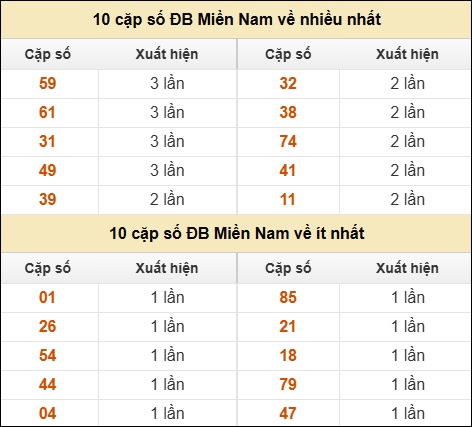 ⚡ 10 cặp số ĐB Miền Nam về nhiều nhất/ ít nhất tính đến ngày 19/11/2025:
