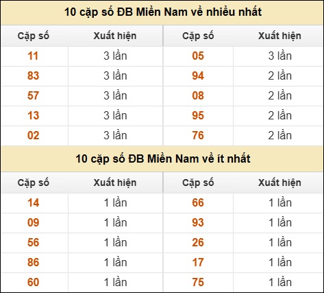 ⚡ 10 cặp số ĐB Miền Nam về nhiều nhất/ ít nhất tính đến ngày 19/03/2026: