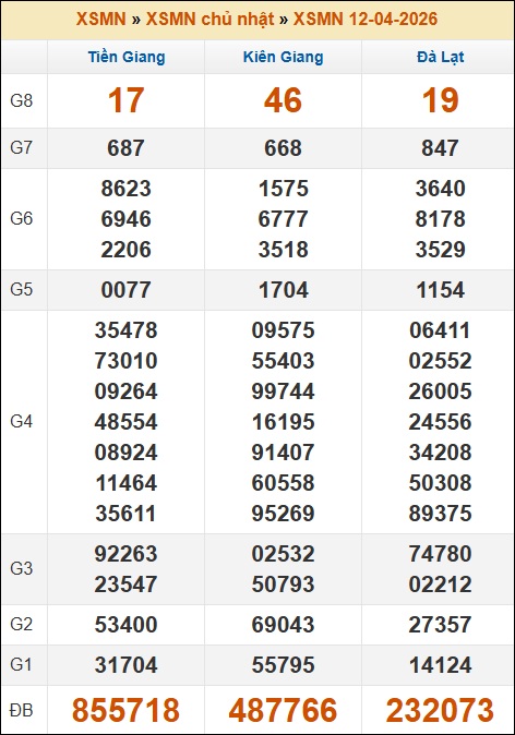 Kết quả xổ số Miền Nam 12/04/2026 chủ nhật tuần trước
